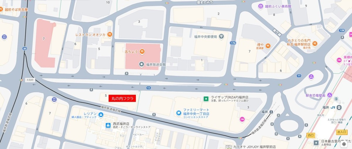 営業場所は、福井駅前の再開発エリアに建設された複合ビル「丸の内フクラ」内の2階になります。当院からは離れたエリアになりますが、ご興味のある方は当院から受診/ご利用案内を行いますので、お気軽にお問い合わせください。